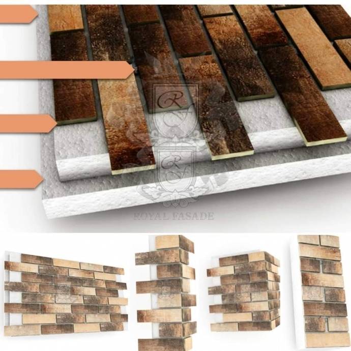 ✔Защитно-декоративное покрытие (клинкерная плитка). Обладает высокими прочностными характеристиками. Она выдерживает значительную нагрузку прессования с полиуретановым клеевым составом в утеплитель, что производится автоматическим путем на конвейере, и образует единую прочную конструкцию – клинкерную термопанель.