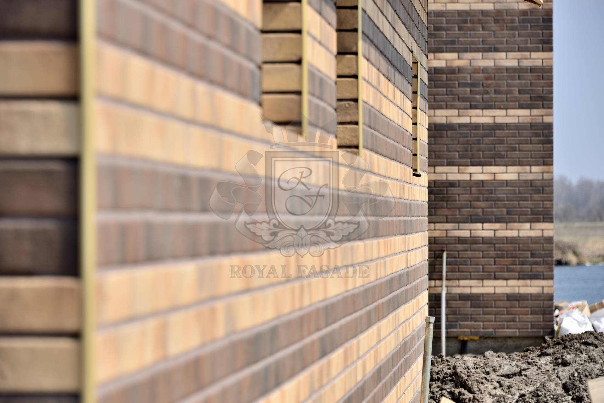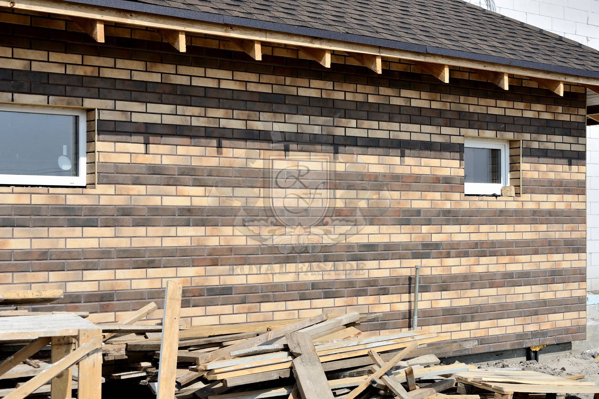 Клинкерную термопанель Роял фасад в основе утеплителя ЭППС 100 мм и клинкерной плитки Cerrad Retro brick Masala + Retro brick Cardamom (Польша).