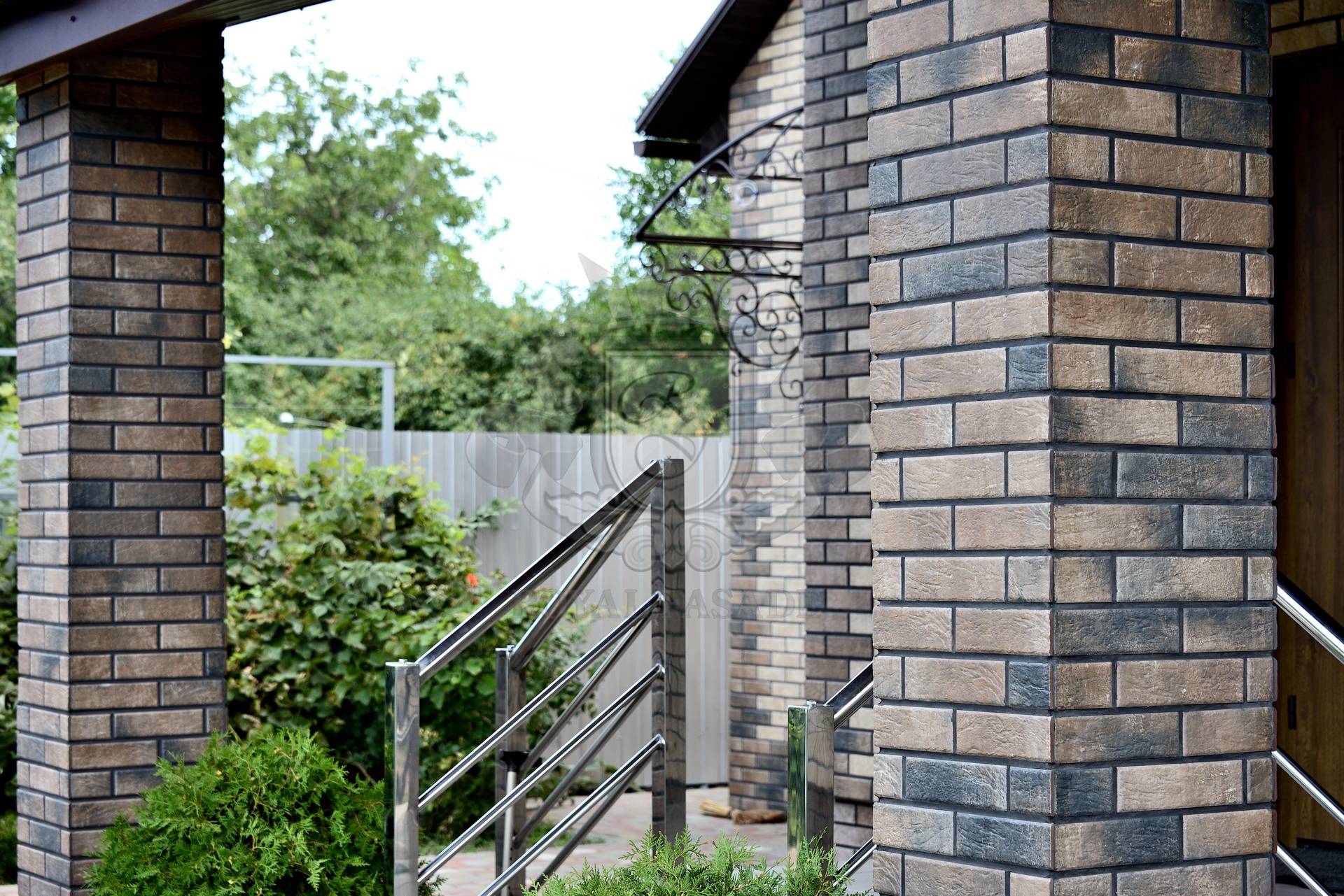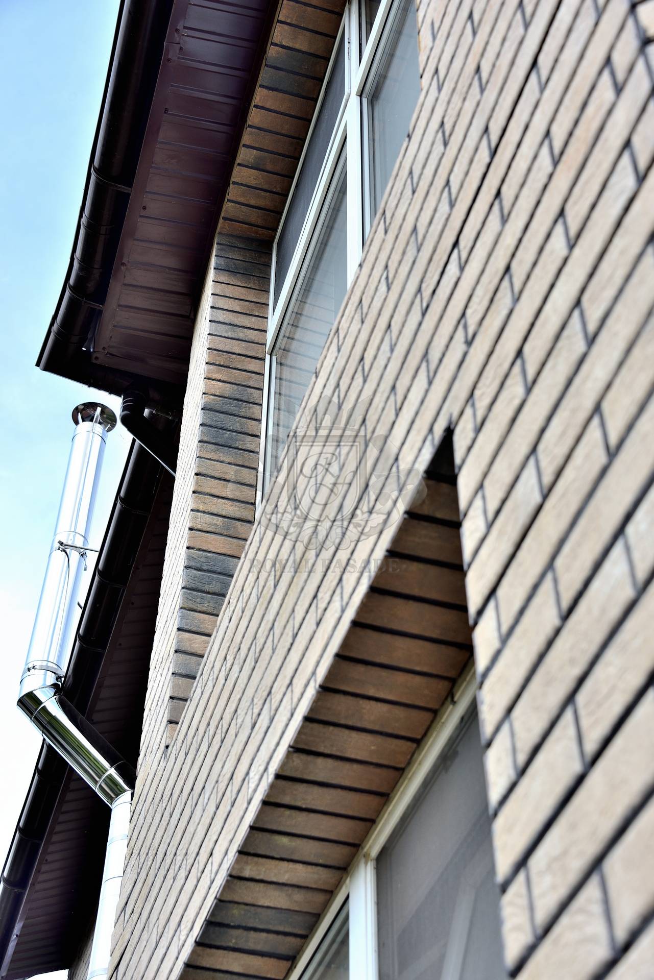 Использовано:Фасад - Клинкерную термопанель Роял фасад в основе утеплителя ПСБС-100 мм и клинкерной плитки Cerrad loft brick solt.Затирочную смесь: ПСМ-082 Графит