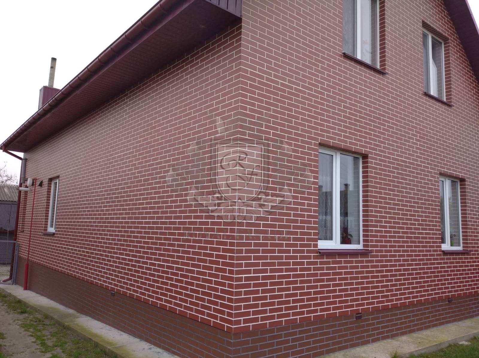 Использовано:Клинкерную термопанель TM ROYAL FASADE на основе ПСБ-С25 100 мм, плитка CERRAD Красная (Rot) (Польша).Затирочную смесь: Белая (Украина).