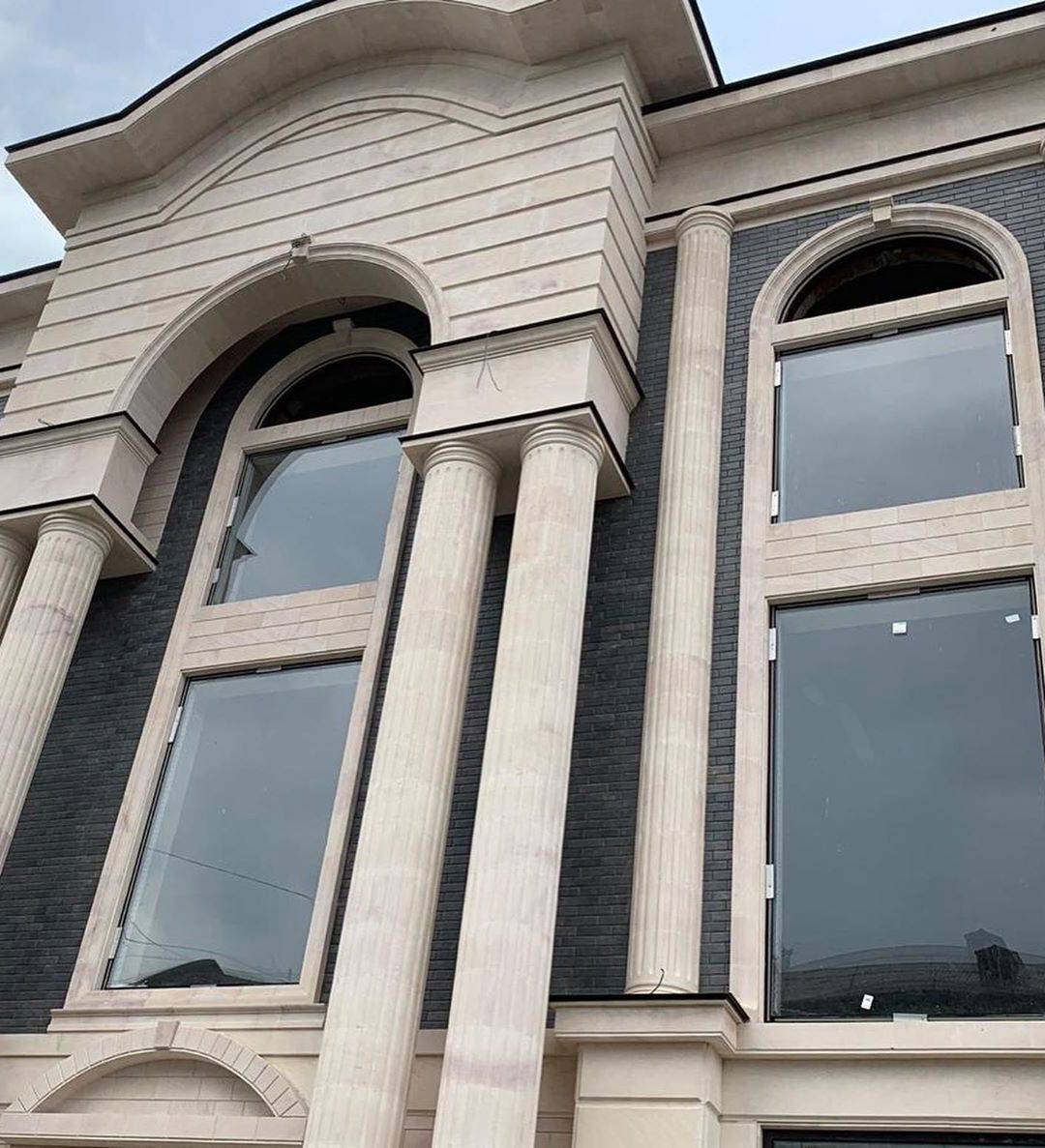 Шикарний будинок з фасадним декором з великими панорамними вікнами з термопанелями з плиткою Viano Antracite