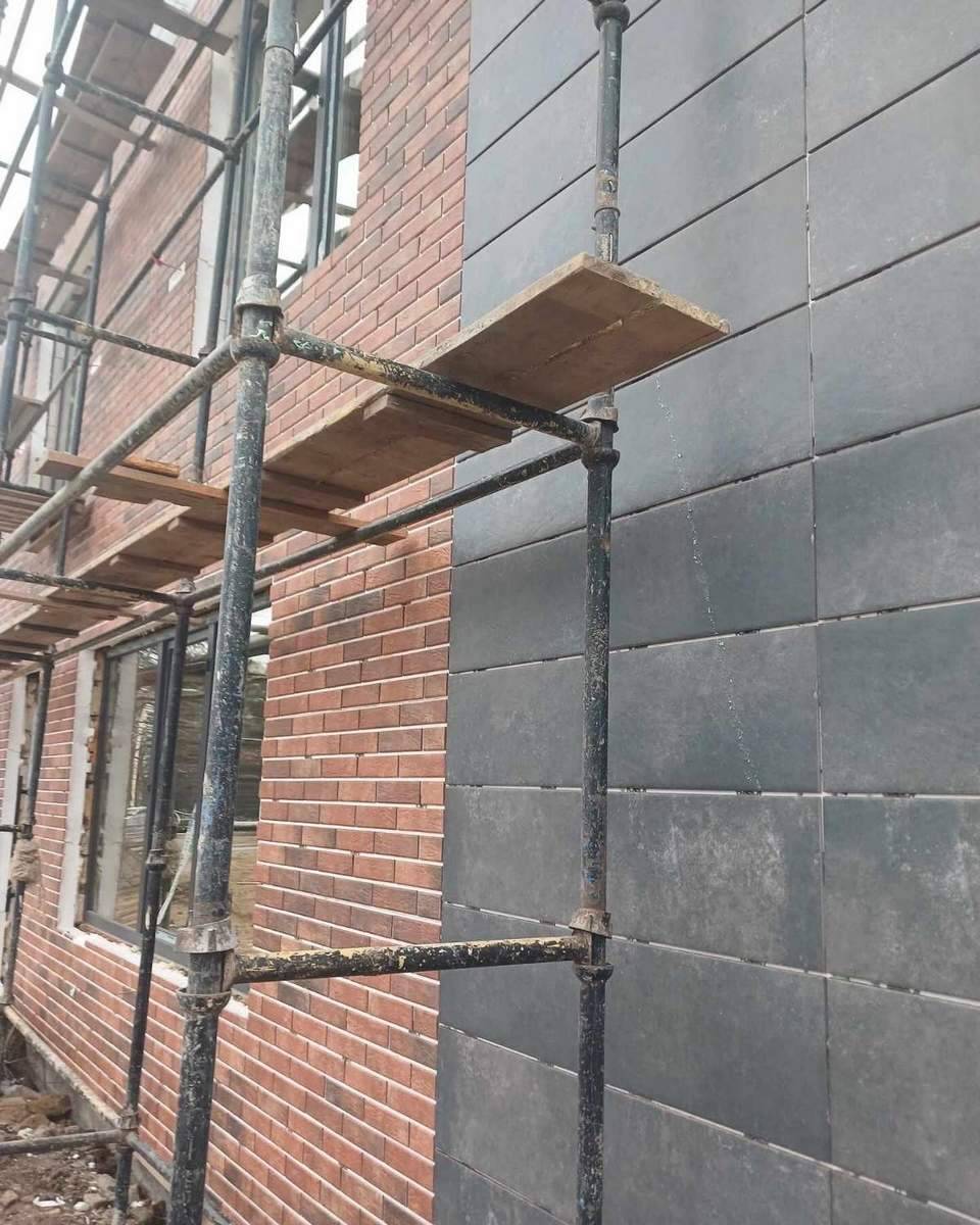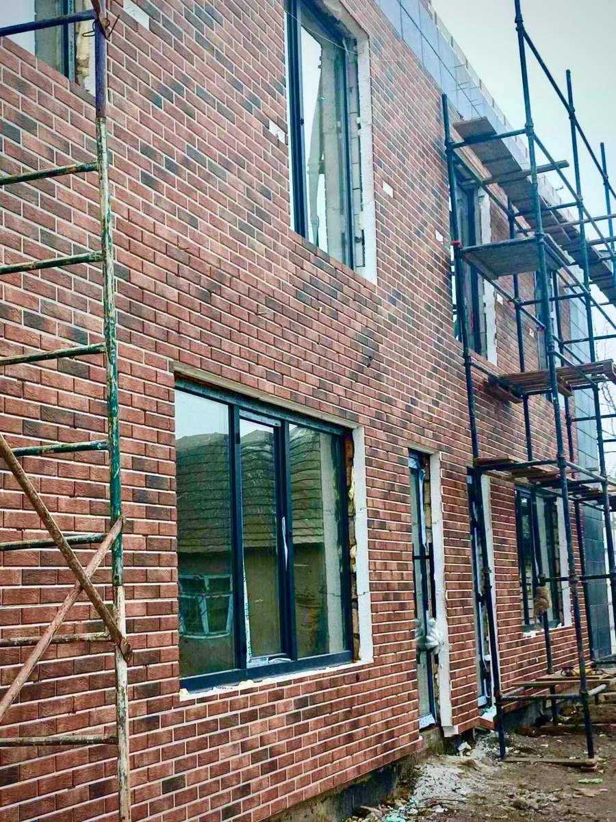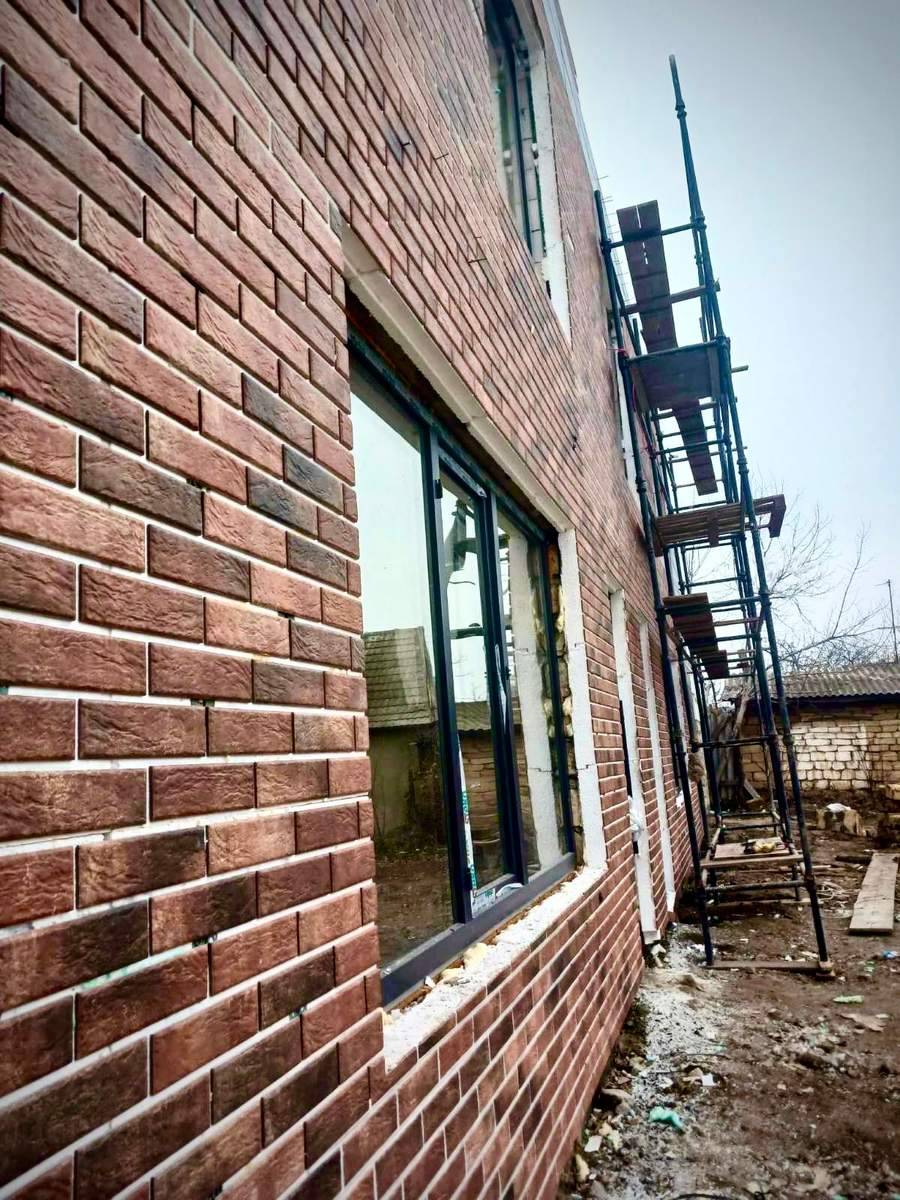 Фасад: в основі утеплювач з плиткою Loft Brick Chily (Cerrad) та Viano Anthracite 30*60 см (Paradyz)