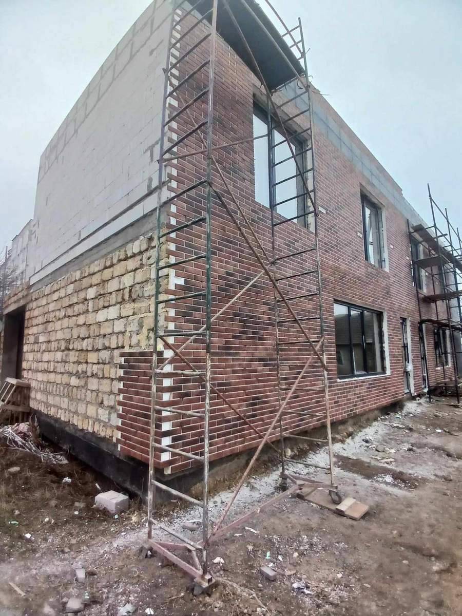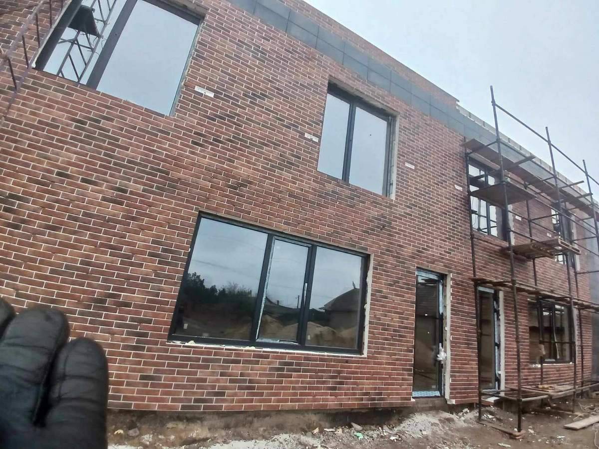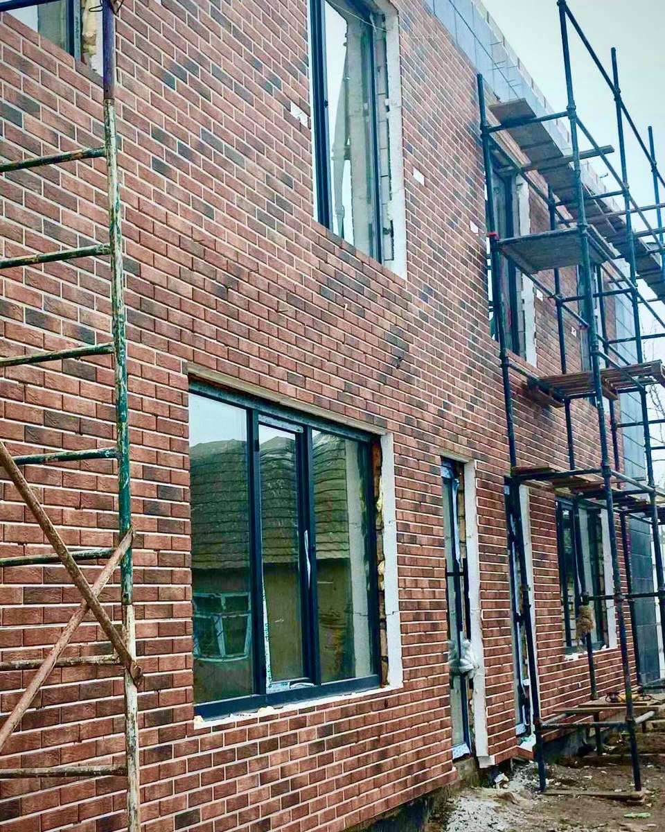 Фасад: в основі утеплювач з плиткою Loft Brick Chily (Cerrad) та Viano Anthracite 30*60 см (Paradyz)