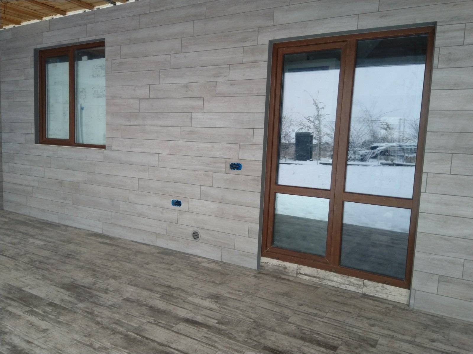 Проєкт утеплення та облицювання тераси термопанелями з плиткою під дерево виконано у 2023 році. Термопанелі Royal Facade мають клінкерну основу, яка забезпечує міцність і довговічність. Плитка Allore Munchen імітує природне дерево, створюючи затишну атмосферу на терасі. Проєкт демонструє, як можна ефективно і красиво утеплити та прикрасити терасу за допомогою термопанелей.