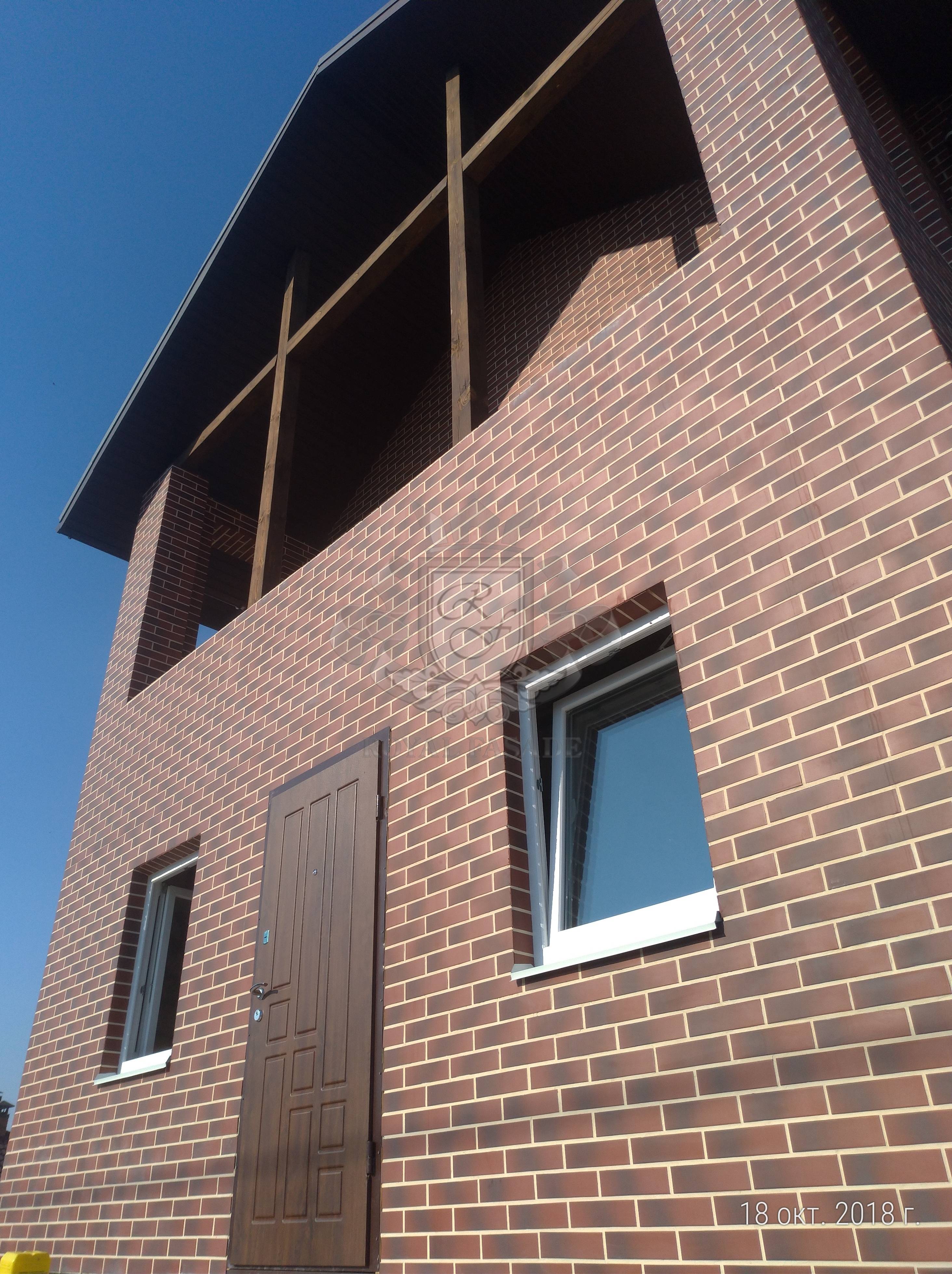 Использовано: Клинкерную термопанель TM ROYAL FASADE в основе утеплителя ПСБ-С25 50мм и клинкерной плитки Rot shadow CERRAD (Польша)Затирочную смесь: Полипласт ПСМ-082 Песчаная (Украина).