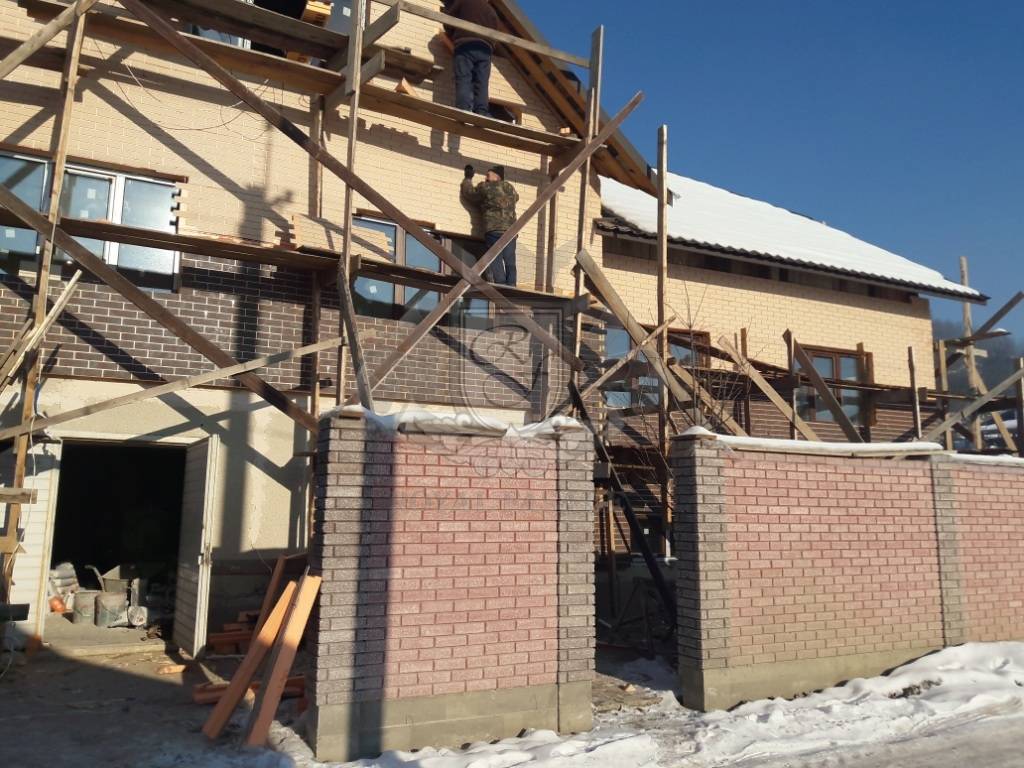 Использовано: клинкерну термопанель основа XPS-45, 100 мм: плитка Семир Красный (Semir Rosa) ДОМ (1й этаж ), Кремова - русткальна (krem rystykalne) ДОМ (2й этаж)