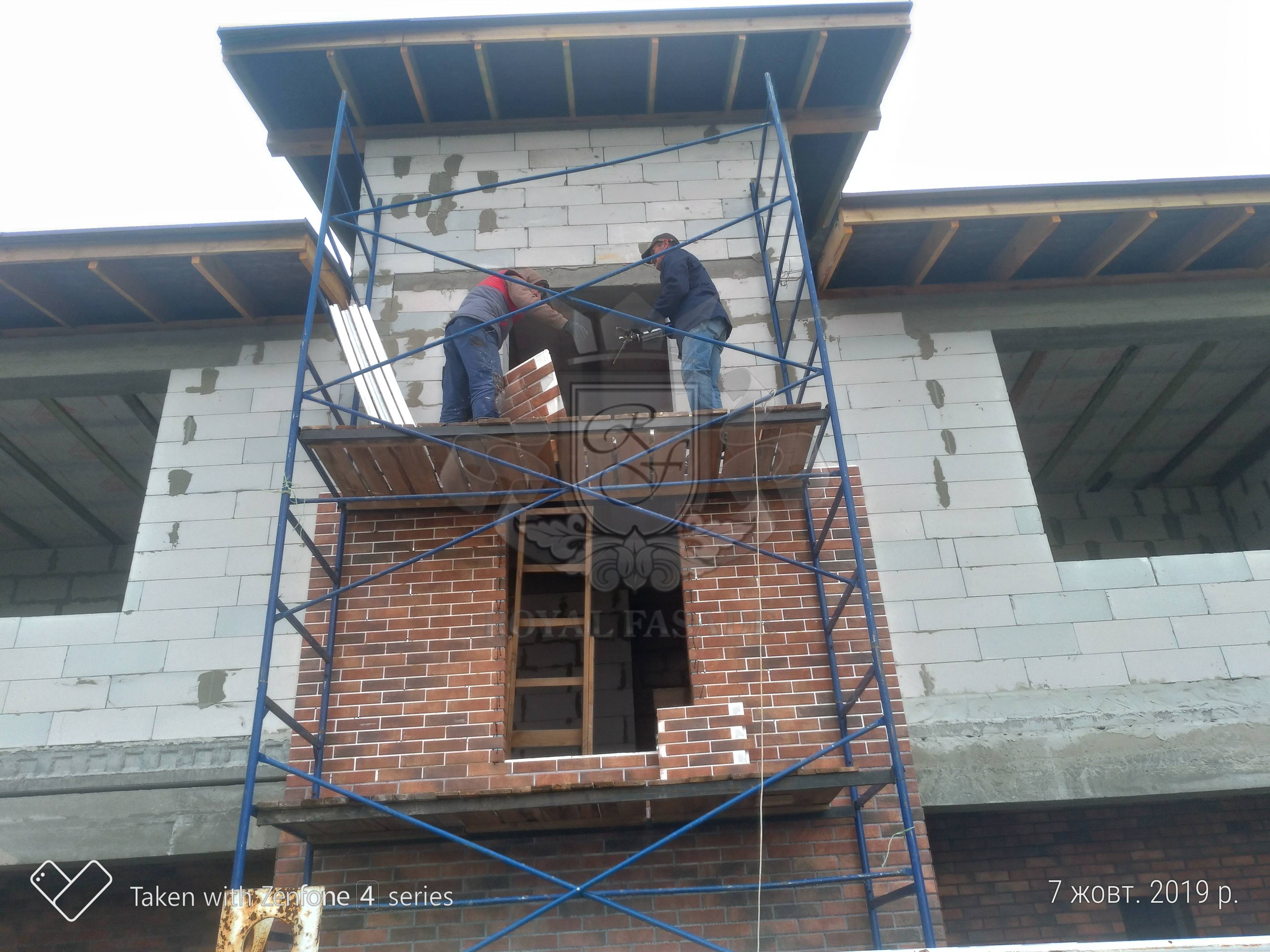 Использовано:Клинкерную термопанель Роял фасад в основе утеплителя XPS-С35 100мм и клинкерной плитки Cerrad Loft-brick Chily (Польша)Затирочную смесь: Полипласт ПСМ-081 ________ (Украина)