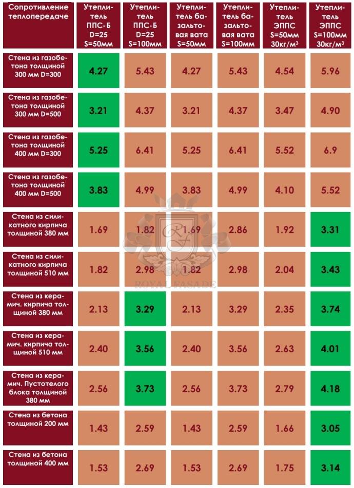 Для полегшення вибору теплоізоляційного матеріалу клінкерної термопанелі і її товщини в таблиці 1 показаний розрахунок опору теплопередачі зовнішньої стіни житла. Рекомендовані значення коефіцієнта стійкості до теплопередачі для більшості міст України повинні бути вище 3,3 (м²•°С)/Вт. Для районів Ужгорода, Одеси, Миколаєва, Херсона, Запоріжжя вище 2,8 (м²•°С)/Вт