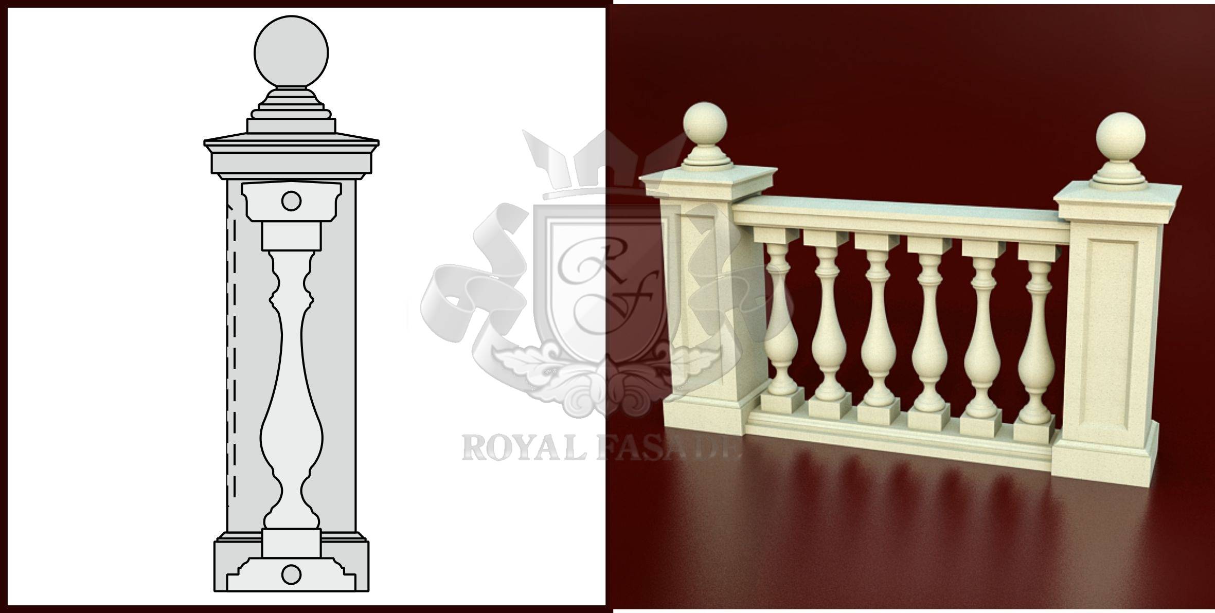 Основним елементом будь-якої балюстради слугує балясина, що являє собою різний за формою і діаметром стовп, який залежить від параметрів фасаду та архітектурного стилю будівель. Балясина виконує дві основні функції фасадного декору, головна з яких - це функція опори поручнів для сходів, а друга - декоративна.