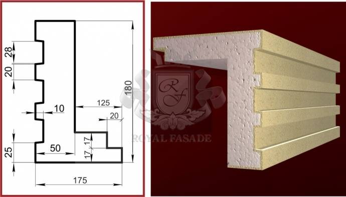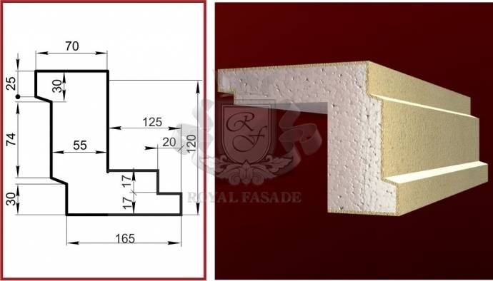Він має схожість з профілем молдинга, а "Г" образна частина має ширину укосу 125мм з додатковими складальними елементами від 65 до 125мм, в разі необхідності регулювання ширини існуючого укосу. Така конструкція стала дуже популярною останнім часом завдяки своїй практичній універсальності та відносно невисокій ціні. Ба більше, монтаж цієї конструкції може виконувати і фахівець із невисоким рівнем кваліфікаційної підготовки, який заздалегідь ознайомився з інструкцією. Адже під час монтажу повністю відсутні процеси нанесення сітки, ґрунтовки, штативки і будь-які "мокрі роботи".