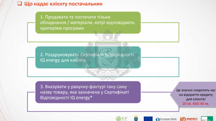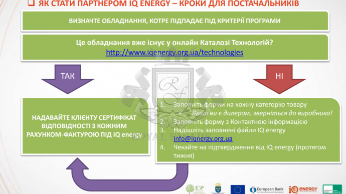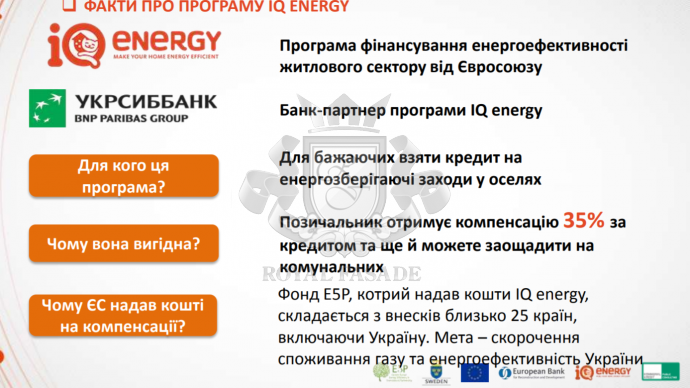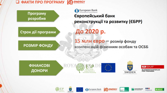 Європейський банк реконструкції та розвитку розробив цю програму детальніше див.: http://www.iqenergy.org.ua/ru/donors-and-partners?___from_store=ua